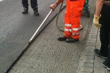 Nach einer Ablüftungsdauer von ca. 15 Minuten kann das Heißmischgut eingebaut werden.